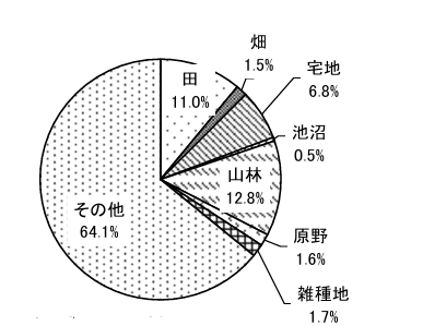 残りの20パーセントのうち、宅地は6.8%に過ぎません。田の11%に比べれて小さな面積です。